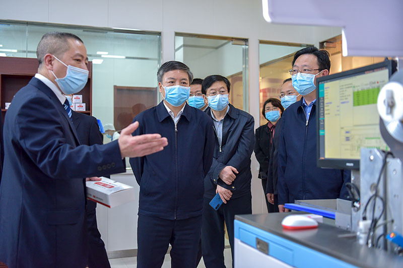 3月24日上午,湖北省副省長楊云彥等領(lǐng)導(dǎo),在黃石市委書記董衛(wèi)民等領(lǐng)導(dǎo)的陪同下,蒞臨勁牌持正堂藥業(yè),調(diào)研指導(dǎo)抗疫中藥制劑生產(chǎn)工作,勁牌公司董事長、總裁吳少勛,副總裁李清安予以熱情接待。 楊云彥副省長參觀了勁牌持正堂智慧藥房,并就抗疫中藥制劑的生產(chǎn)與捐贈等情況聽取了詳細匯報。他指出,疫情期間,中藥在預(yù)防和治療方面都發(fā)揮出了重要作用,其有效性得到了認證與認可。勁牌持正堂積極生產(chǎn)捐贈抗疫中藥制劑,為抗疫作出了顯著貢獻,對此,楊云彥副省長給予了高度贊揚和衷心感謝。 楊云彥副省長還鼓勵勁牌持正堂堅定中醫(yī)藥健康產(chǎn)業(yè)發(fā)展之路,持續(xù)提升中藥配方顆粒質(zhì)量水平,充分發(fā)揮中藥防病治病得天獨厚的優(yōu)勢,為抗擊疫情,振興中醫(yī)藥事業(yè)的目標(biāo)再奮進。