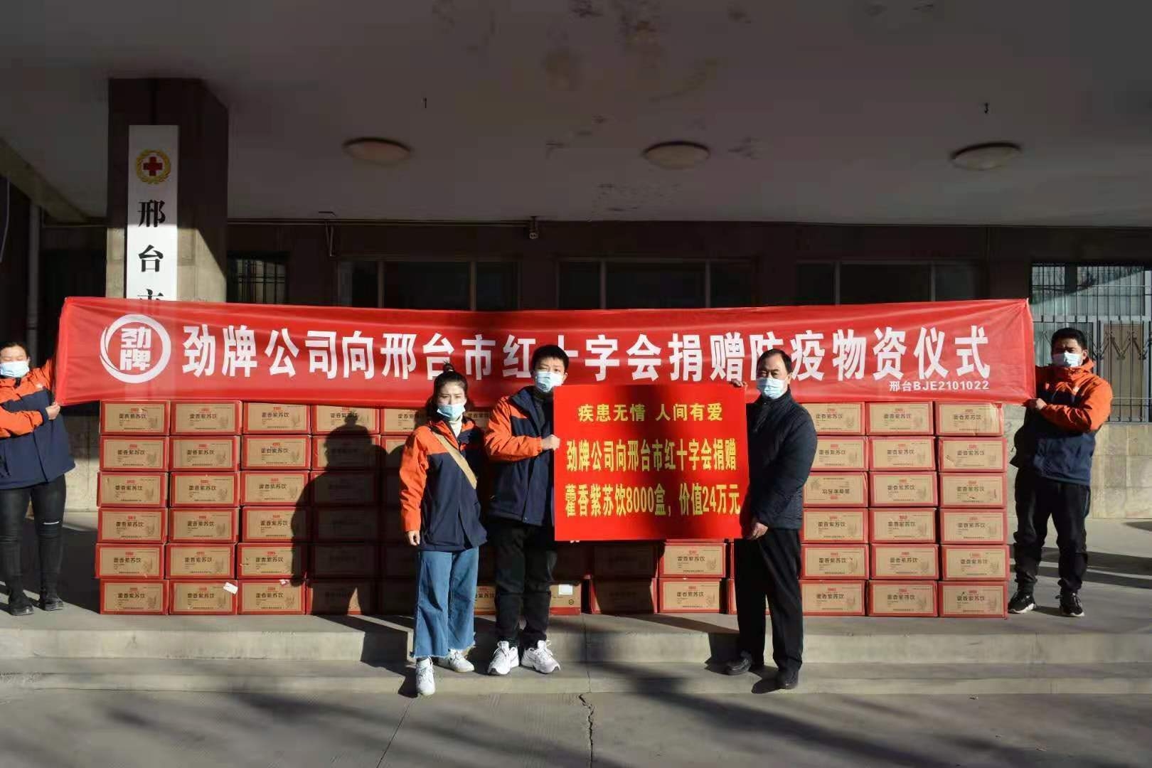 昨日,河北省邢臺(tái)市收到了勁牌持正堂委托邢臺(tái)紅十字會(huì)捐贈(zèng)的8000盒,總價(jià)值達(dá)24萬元的藿香紫蘇飲。